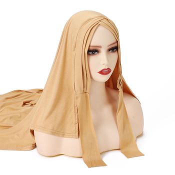 Arabische Moslim Luxe Comfortabele Tweedelige Jersey Sjaal Instant Hijab Met Onderdoek Trekken Op Hijabs Dubai Sjaals Qk230